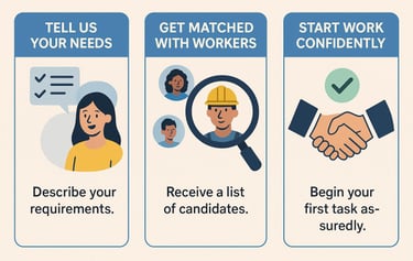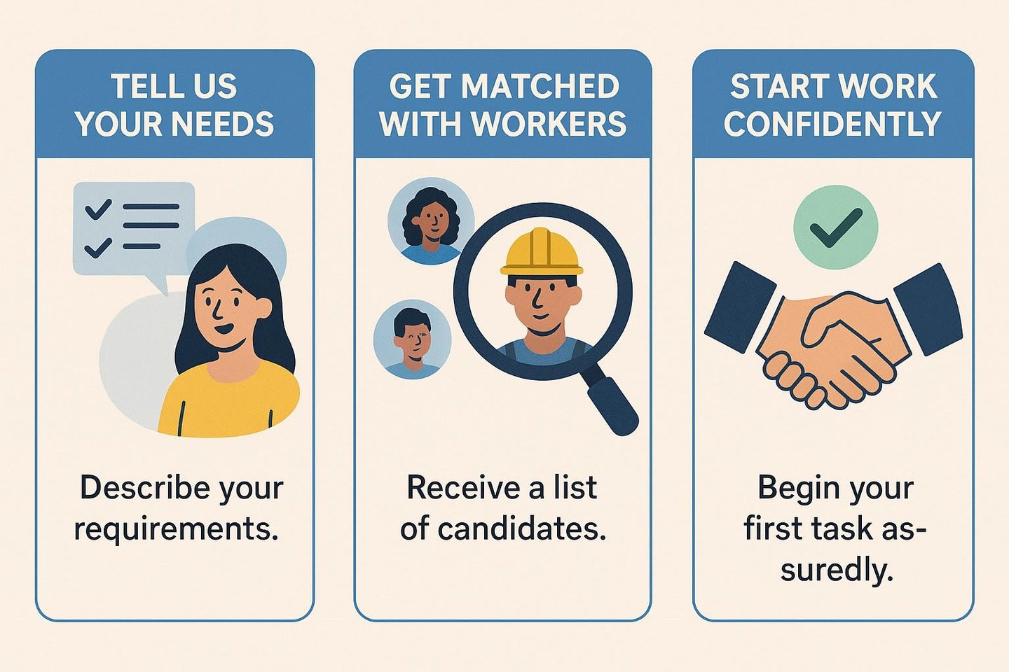 As a small business owner, finding dependable plumbers and carpenters was always a challenge. With BlueHats, the process is hassle-free. I just share my needs, and I quickly get connected to trained and certified workers. It saves me time and gives me peace of mind.